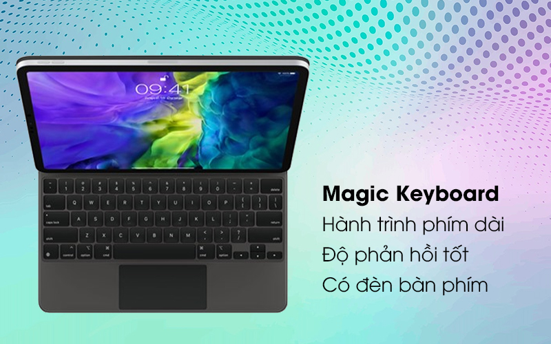 Magic Keyboard kết nối với iPad Pro 11 một cách nhanh chóng thông qua cơ chế từ tính thông mình. Như vậy sẽ không cần đến các loại dây cáp hay cổng kết nối nào khác, đơn giản hóa cho chiếc bàn phím của bạn.