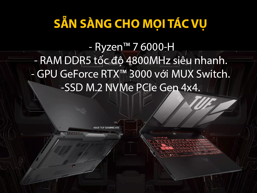 Đánh giá Laptop ASUS TUF Gaming A15 FA507RC Ryzen™ 7-6800H | 8GB | 512GB | RTX™ 3050 4GB | 15.6-inch FHD | Win 11 | Jaeger Gray