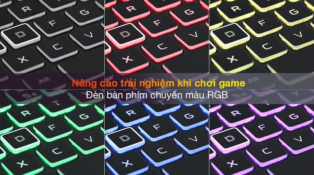 Đèn bàn phím chuyển màu RGB nổi bật, bắt mắt, kích thích cảm giác người dùng dù ở môi trường thiếu sáng, giúp người dùng xác định chính xác vị trí của các phím bấm dễ dàng cùng hành trình phím sâu và độ nảy tốt, mang lại trải nghiệm nhập liệu thoải mái.