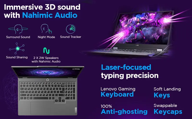 Không quá màu mè như những chiếc bàn phím Keyboard sử dụng LED RGB, Lenovo LOQ có cụm bàn phím với đèn LED nền đơn sắc màu trắng khá dễ chịu, người dùng có thể tuỳ chọn bật/tắt theo ý muốn. Cảm giác gõ của bàn phím đã được nâng cấp đáng kể, chúng ta có thể cảm nhận rõ rệt sự thay đổi về tốc độ phản hồi cũng như độ ổn định của các phím bấm qua phiên bản mới nhất 2024 lần này, cải tiến này cũng giúp tốc độ hoàn thành công việc của người dùng tăng lên và độ chính xác khi sử dụng bàn phím được đảm bảo.